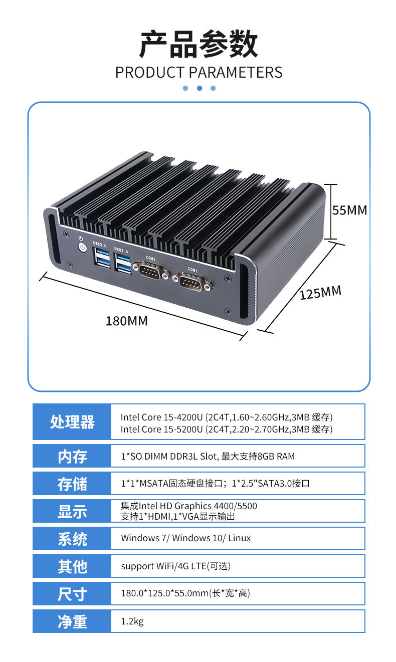 内存1*SO DIMM DDR3L Slot, 最大支持8GB RAM